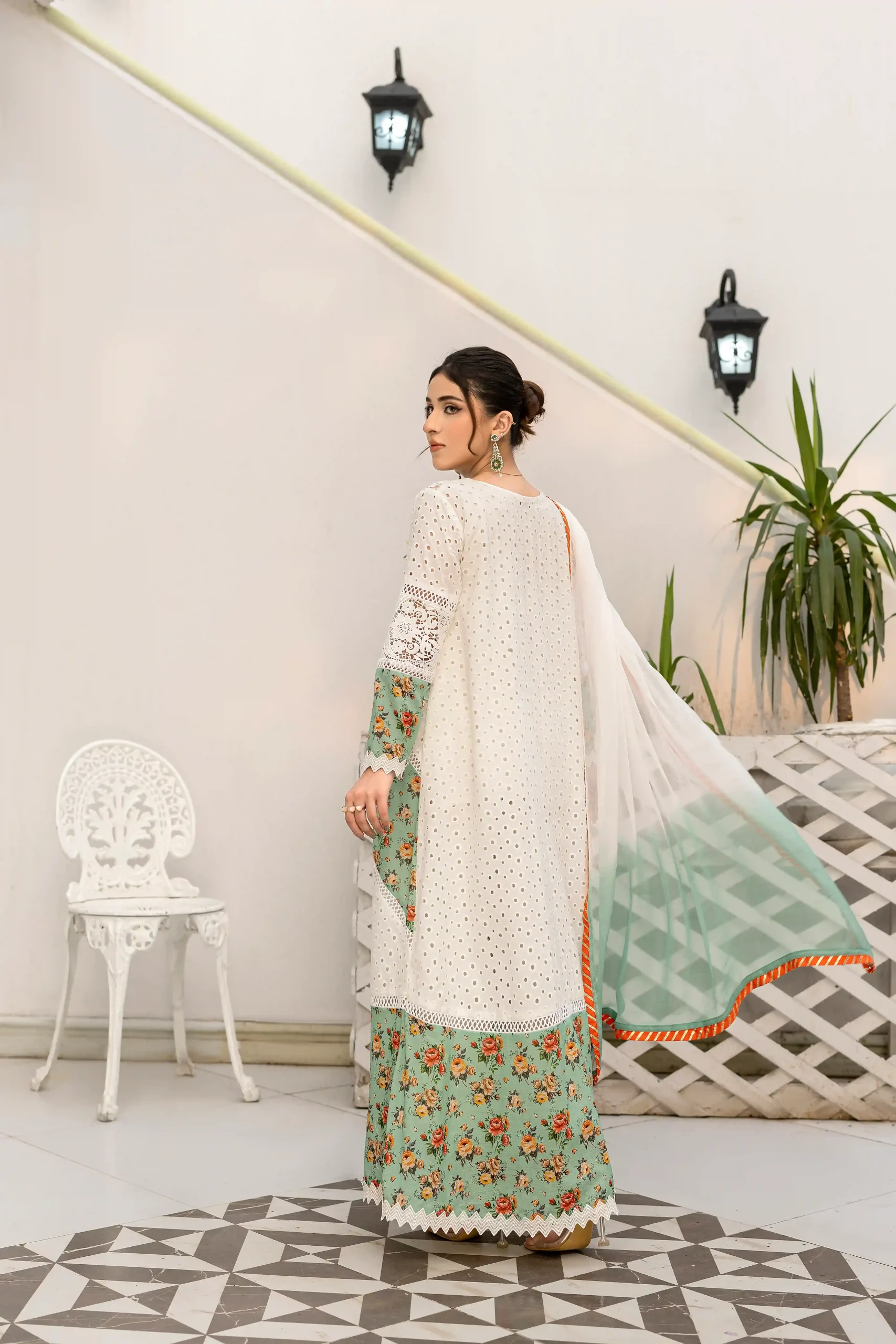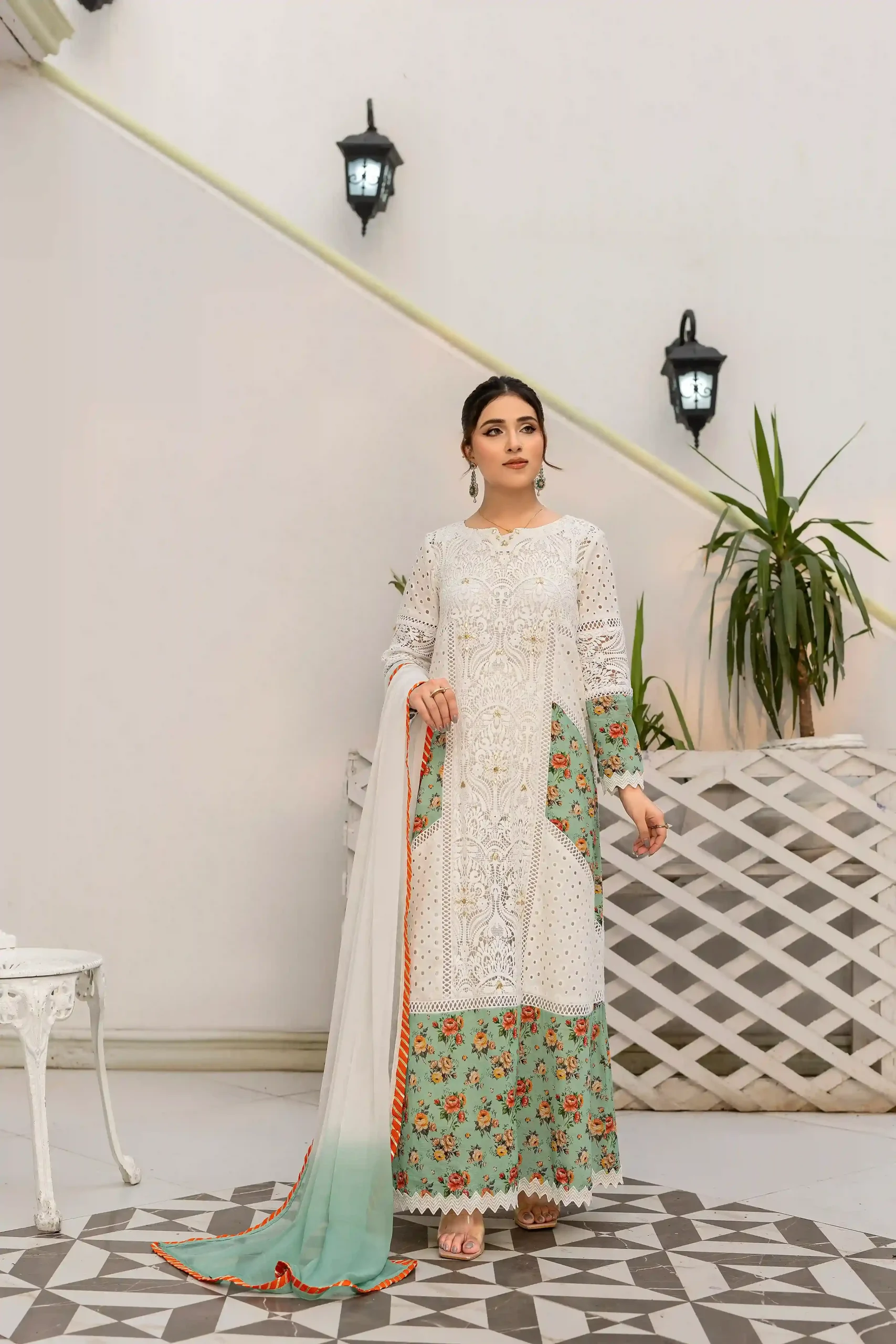 Fabric: Shuttle Net, Chikankari, Doria Lawn.